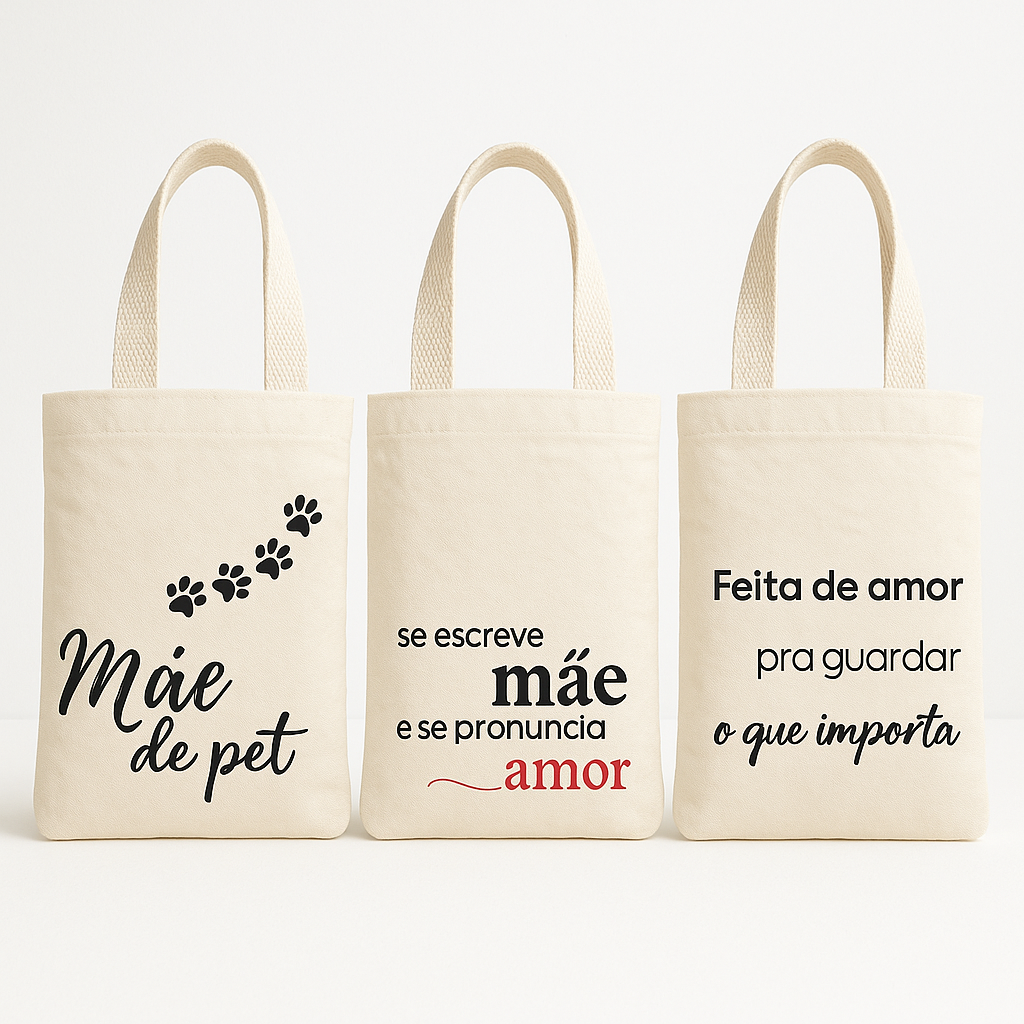 O kit inclui um tapa olhos de erva, 2 biscoitos calipso ou cookies, 1 sachê de chá de erva doce com a mensagem: Sinta o aroma, feche os olhos, volte para si. Tudo dentro de uma mini ecobag 15cmx19cm em 3 versões: Mãe de Pet, Feita de Amor pra guardar o que importa e Se escreve mãe e se pronuncia amor. 1 cartão com ramo de flores secas com os dizeres: se escreve mãe e se pronuncia amor, um laço de organza na alça.